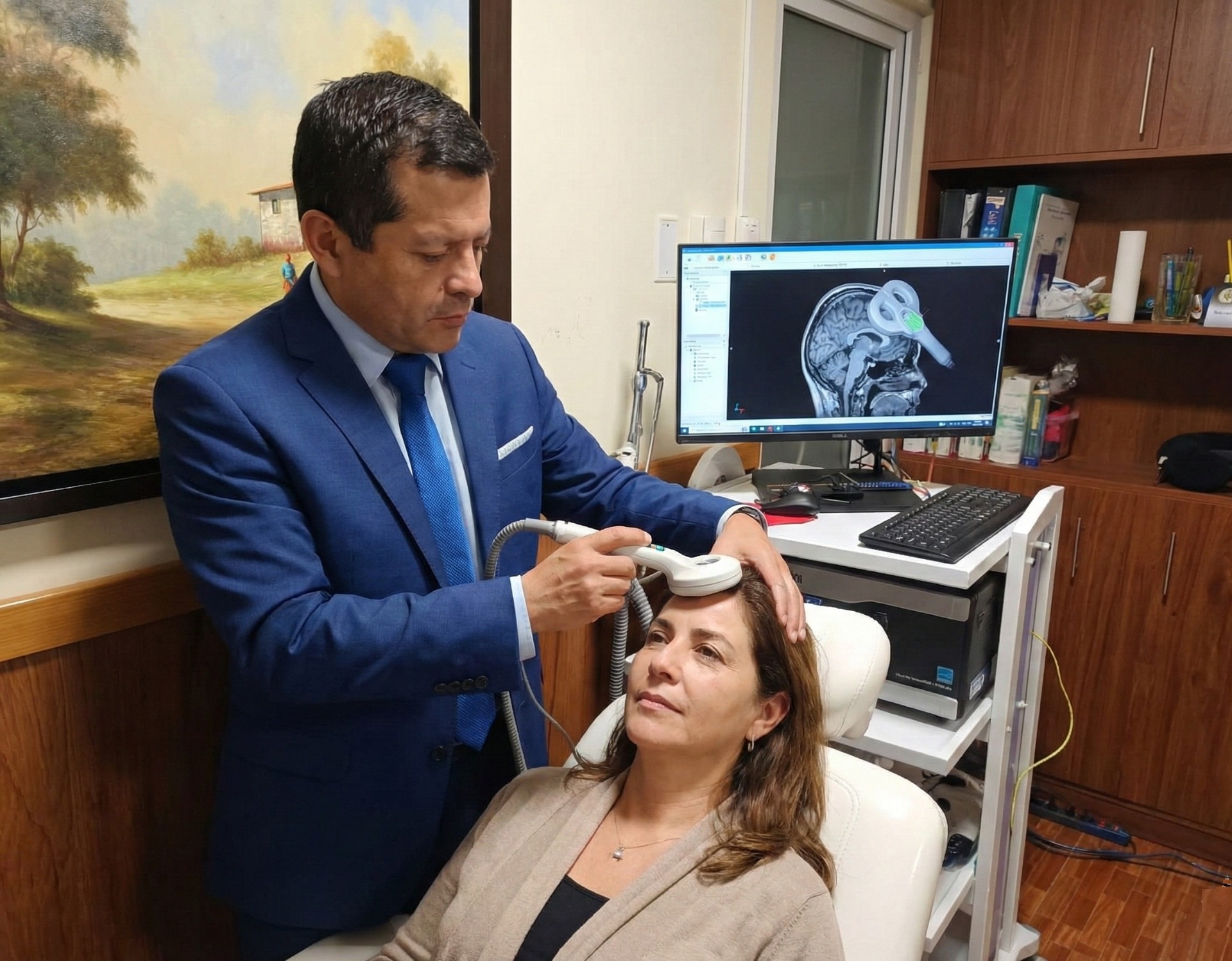 NEURO NAVEGACIÓN : LOCALIZACIÓN DE PUNTO EXACTO DEL CIRCUITO CEREBRAL A ESTIMULAR, PARA COLOCAR LA BOBINA CON PRESICIÓN DEL EL ÁNGULO Y ROTACIÓN APROPIADO DE LA BOBINA CON RESPECTO AL CEREBRO.